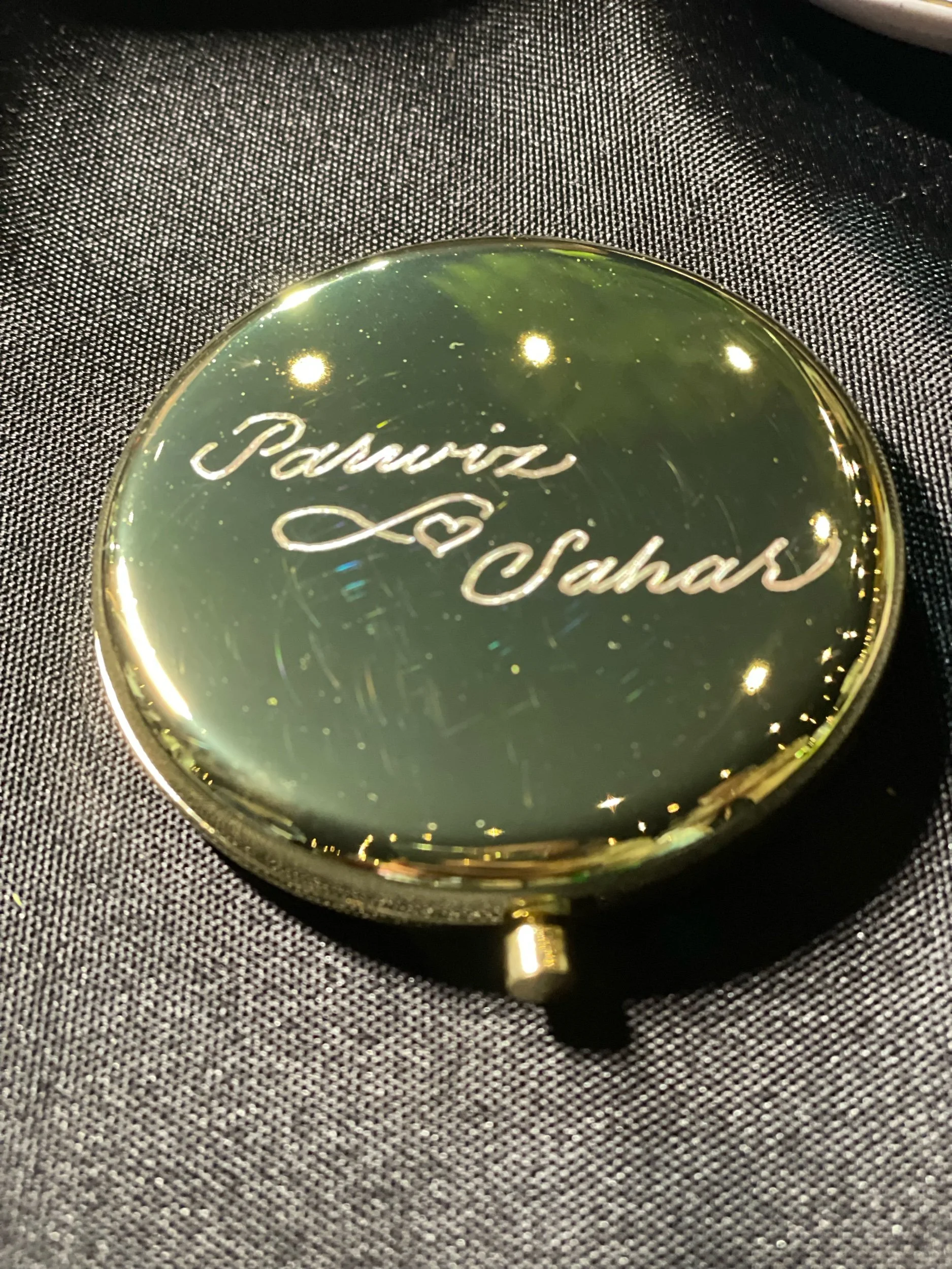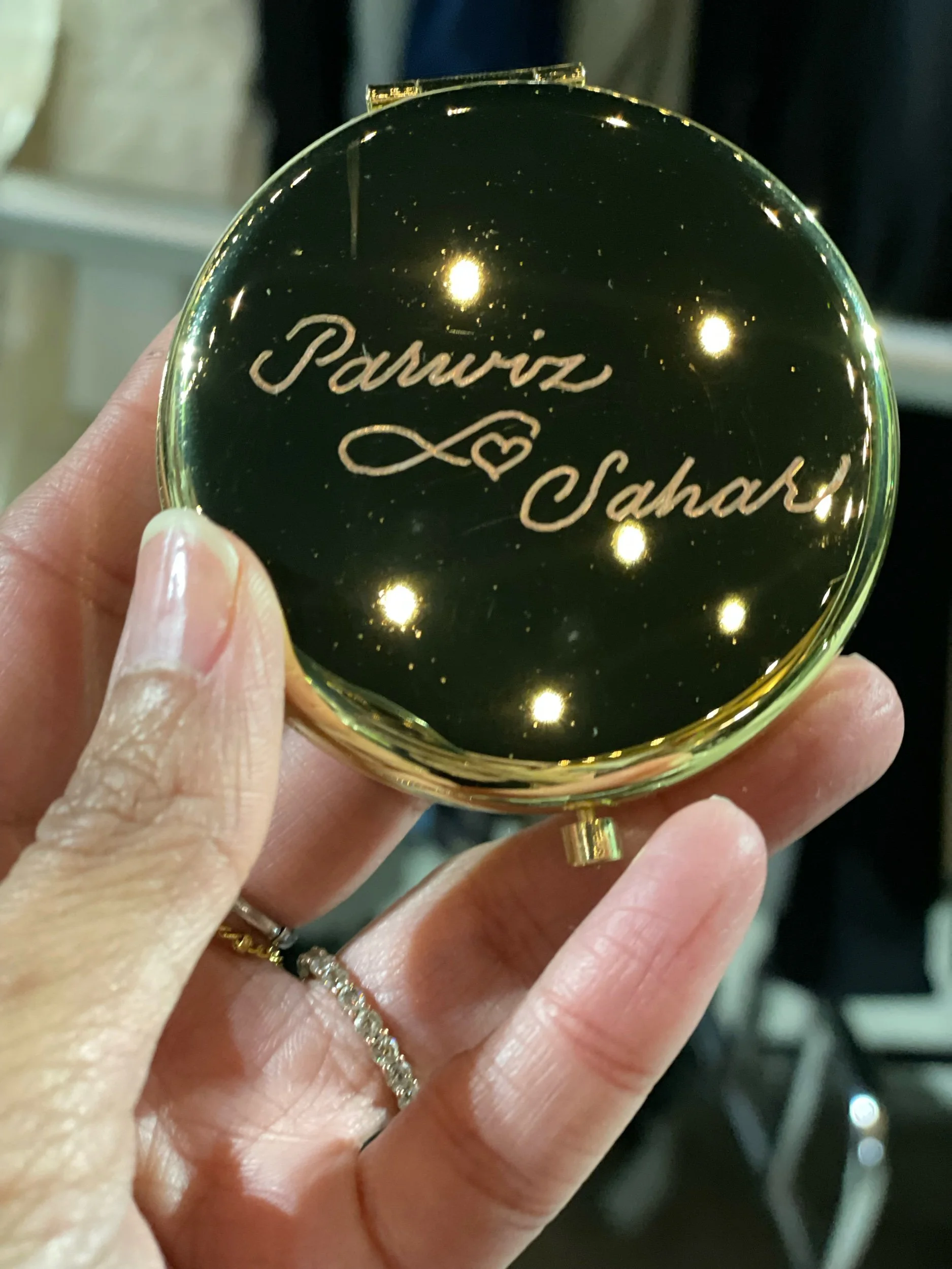 Hand-engraved and personalized compact mirrors make wonderful gifts for anyone! They're compact, so can easily be carried in a purse or bag. These mirrors are perfect for bridesmaids, Quinceanera gifting, teacher's gifts or anyone you'd like to send a little bit of love and appreciation to.